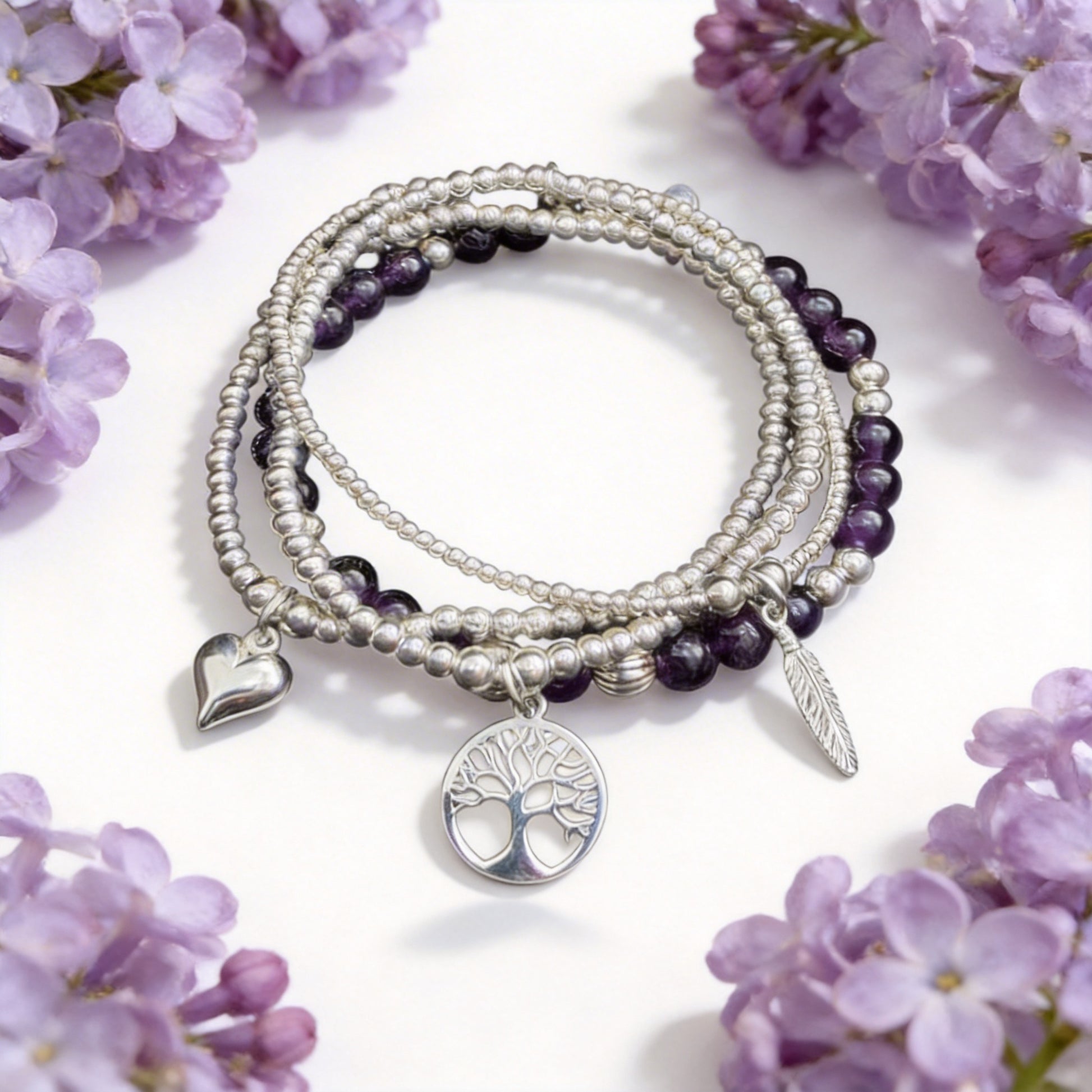 Presentamos Family Love Stack, para cuando las palabras no dicen lo suficiente. Muestre su amor incondicional con la última incorporación: un corazón Gigi, un árbol de la vida y una pulsera Stay Wild son el complemento perfecto para la pulsera Violet Skies. ¡Di "Te amo" con algo especial que durará para siempre!