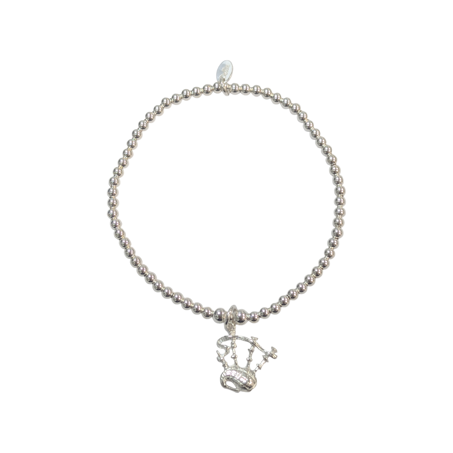 This Bagpipe Bracelet is the perfect accessory for any Scotland lover. Handmade in Lincolnshire, it features a detailed bagpipe design that will add a touch of Scottish pride to any outfit. Perfect for music enthusiasts or anyone looking for a unique piece of jewelry.