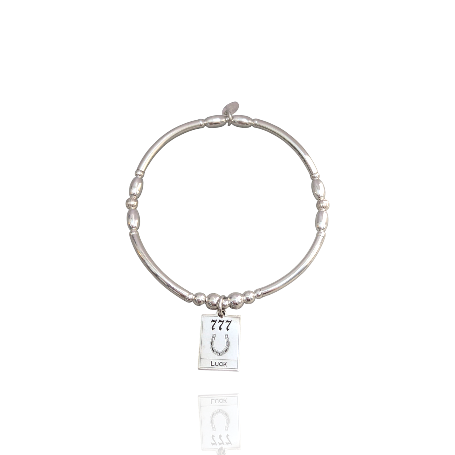 Add a dash of magic with our new 'Luck' Angel Number Tube Bracelet. Handmade from sterling silver, this playful treasure features the 777 angel number engraved to invite good fortune and positive vibes into your day. A perfect way to wear your luck on your sleeve—literally!
