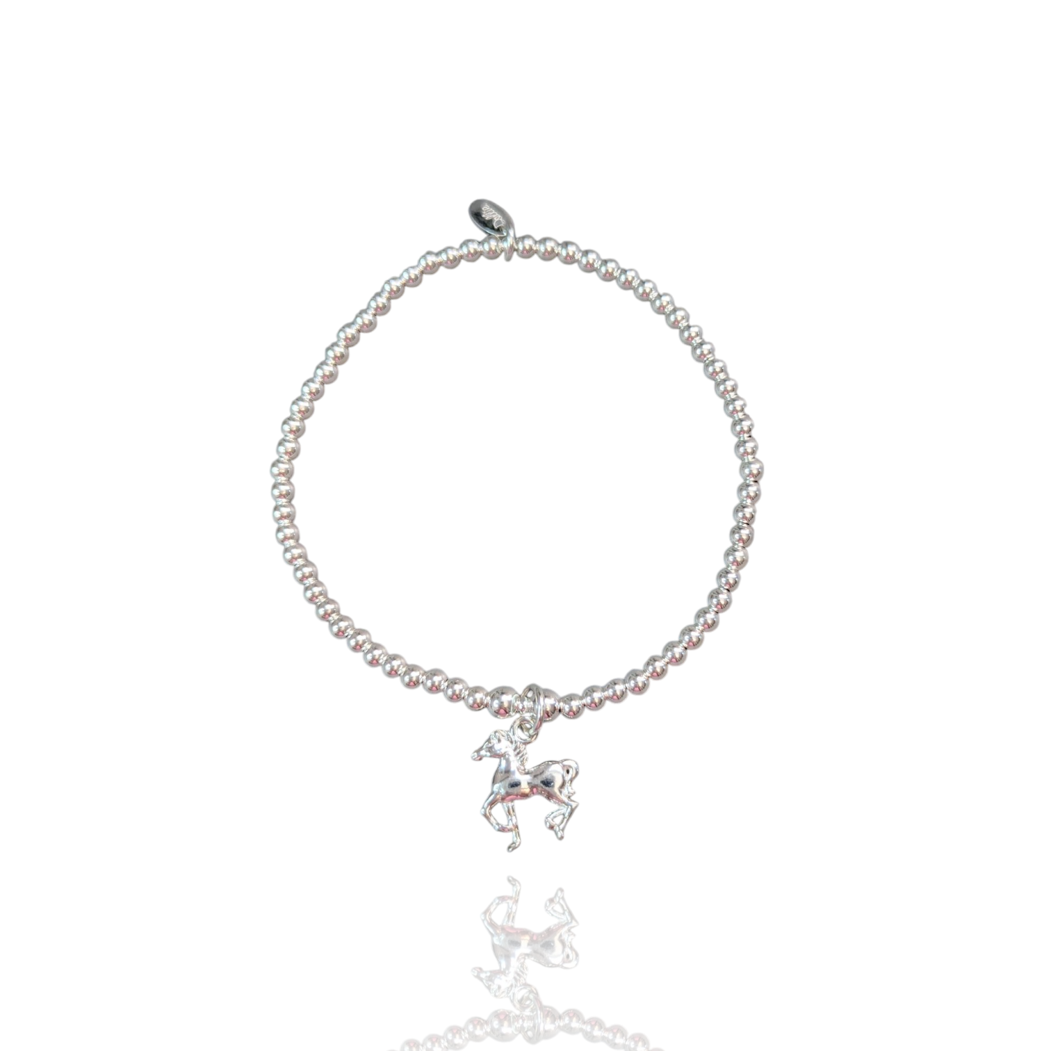 Giddy up your style with our Silver Horse Bracelet! This Bracelet features a charming horse charm, making it the perfect accessory for any equestrian lover. Let your inner cowgirl shine with this must-have piece. Saddle up and get yours today!