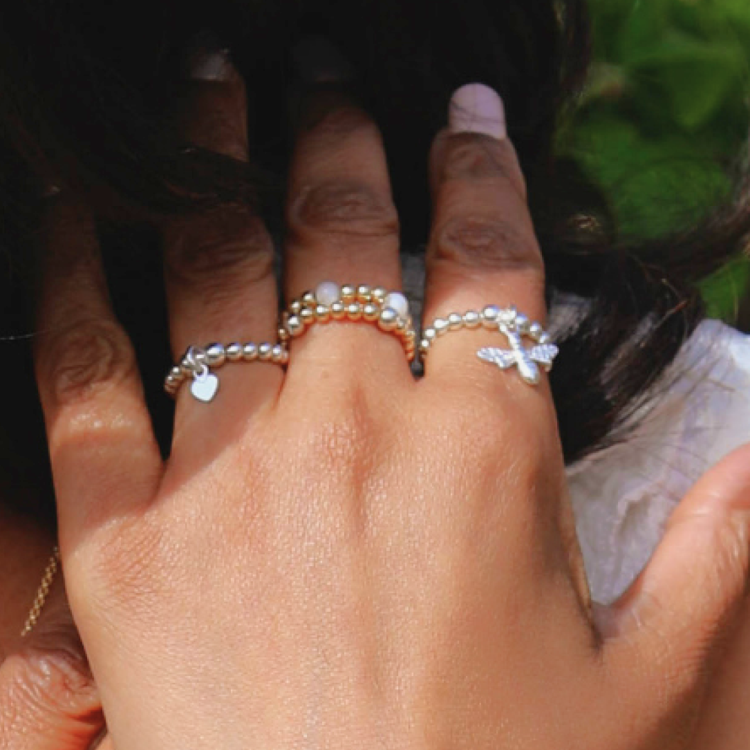 Add a touch of elegance to your jewellery collection with our stunning Champagne and Pearls Ring. This beautiful piece is the perfect addition to any outfit, and its unique design perfectly complements our Champagne and Pearls Bracelet. A match made in heaven!