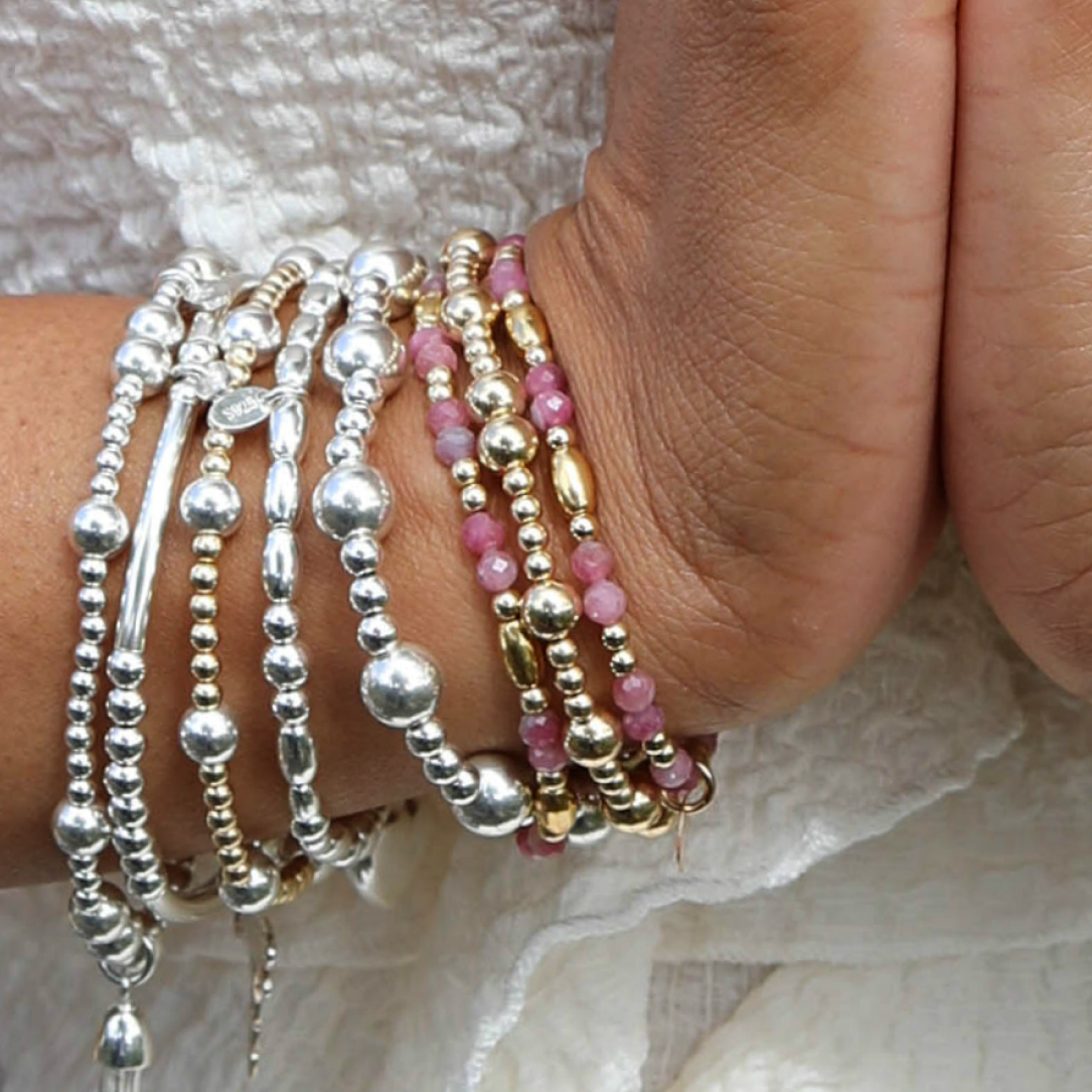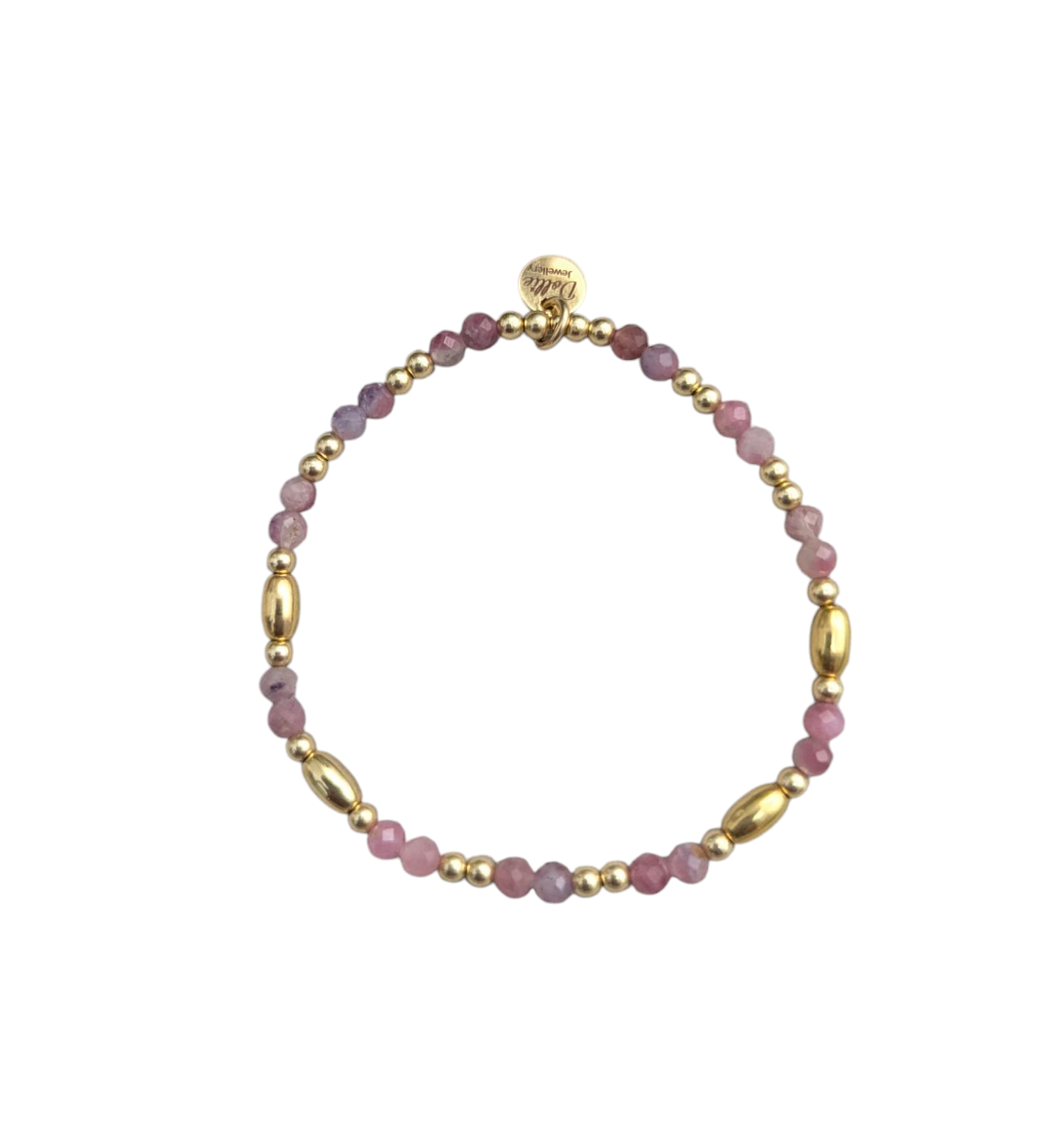 Add a touch of playful elegance to your outfit with our Golden Blush Bracelet. The beautiful pop of pink color is perfect for daily wear, adding a fun twist to any look. Make a statement with this quirky and stylish bracelet.