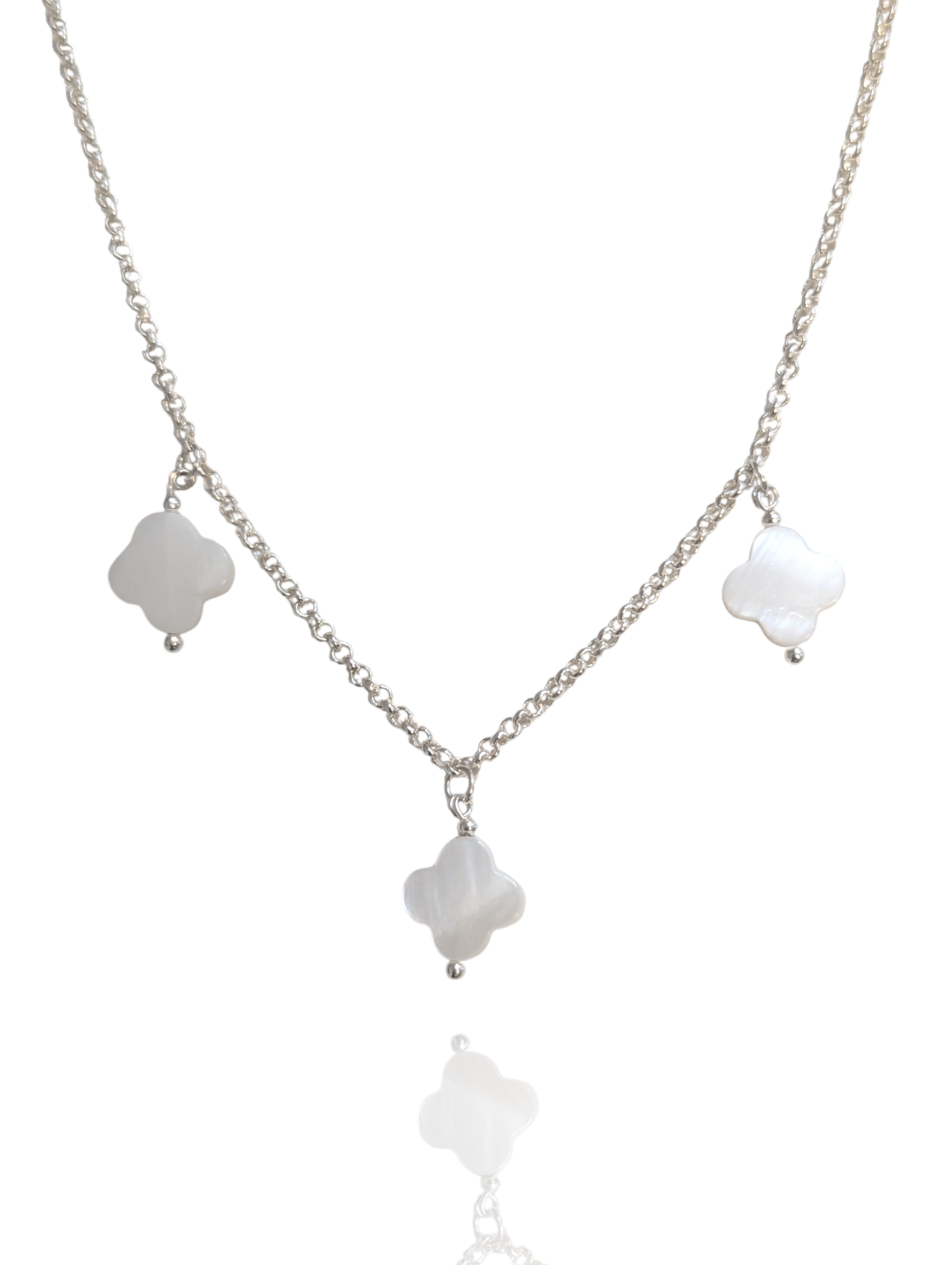 Add a touch of elegance with our Mother of Pearl Multi Clover Necklace. Handmade in Lincolnshire, this necklace features 3 charming clovers, tripling the beauty and charm. Shine bright with this unique piece!