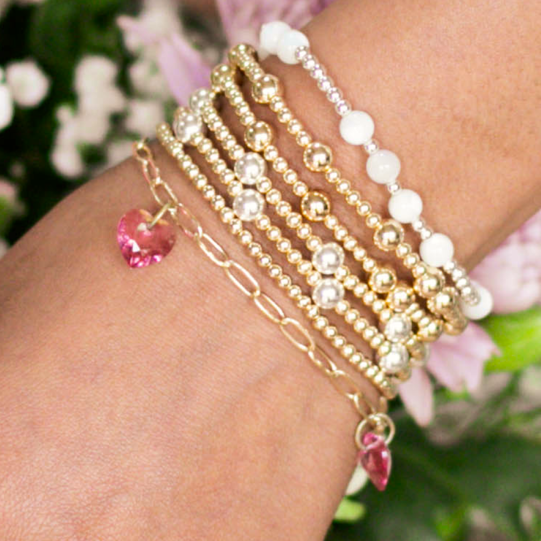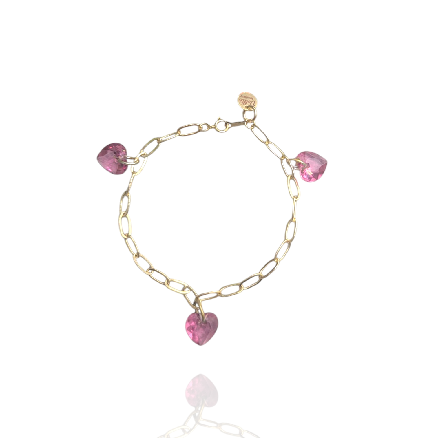 Add a dose of charm to your style with our playful Summer Sunset Silver Bracelet. Featuring a beautiful pop of gold and pink, this bracelet is adorned with 3 adorable hearts that will add a touch of sweetness to any outfit. Perfect for summer days and breezy nights.