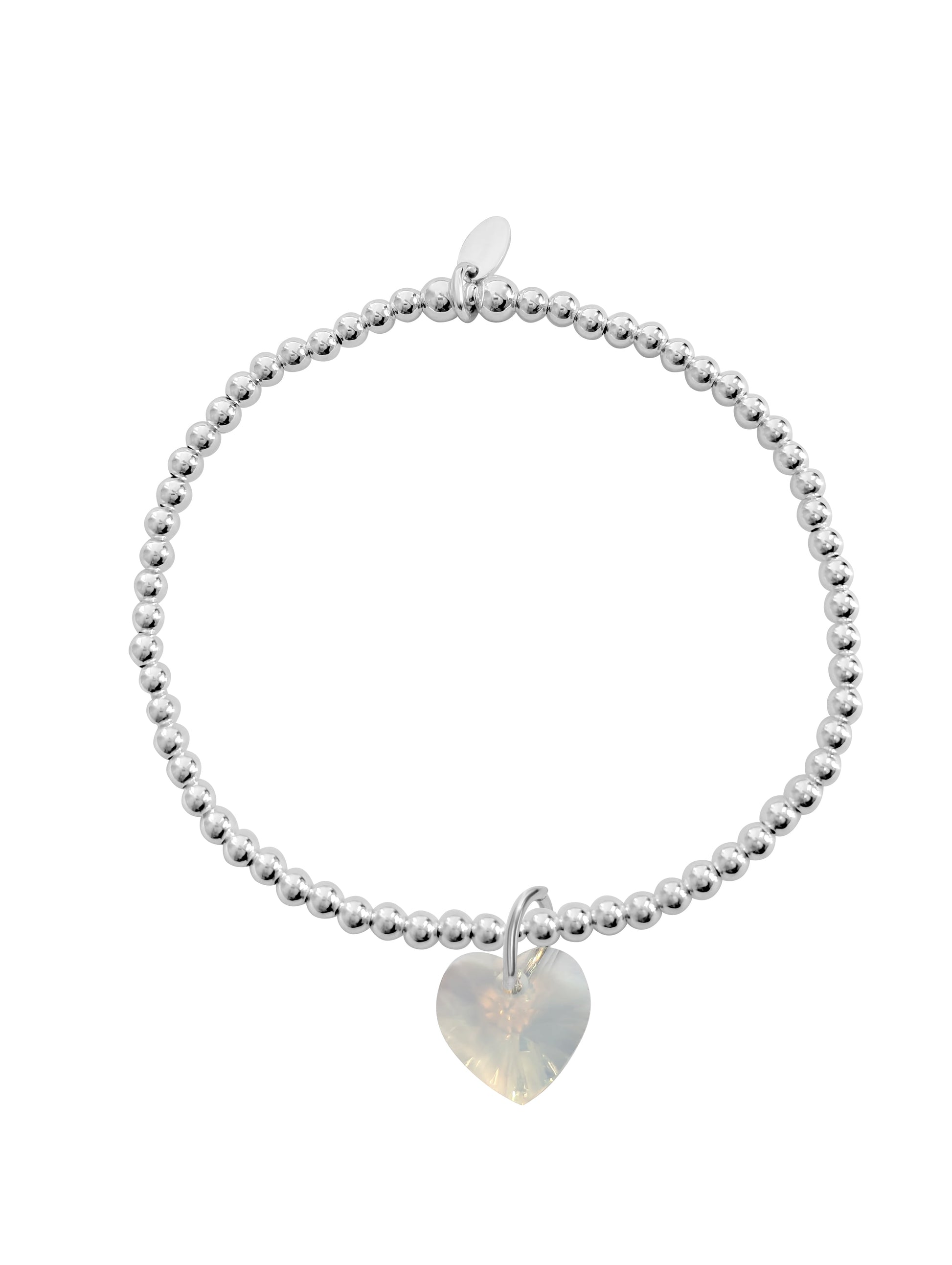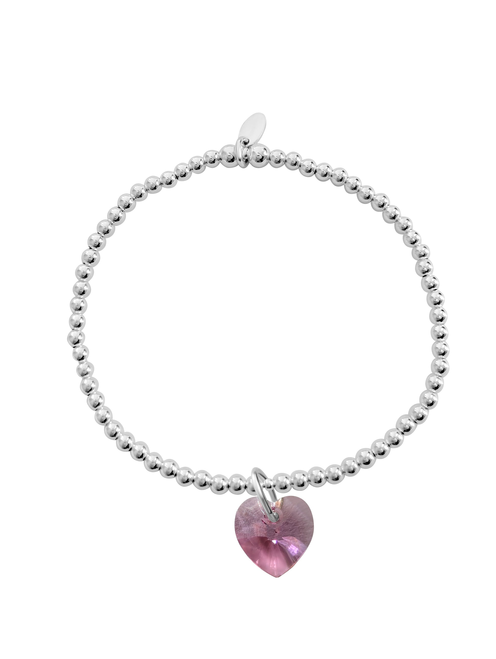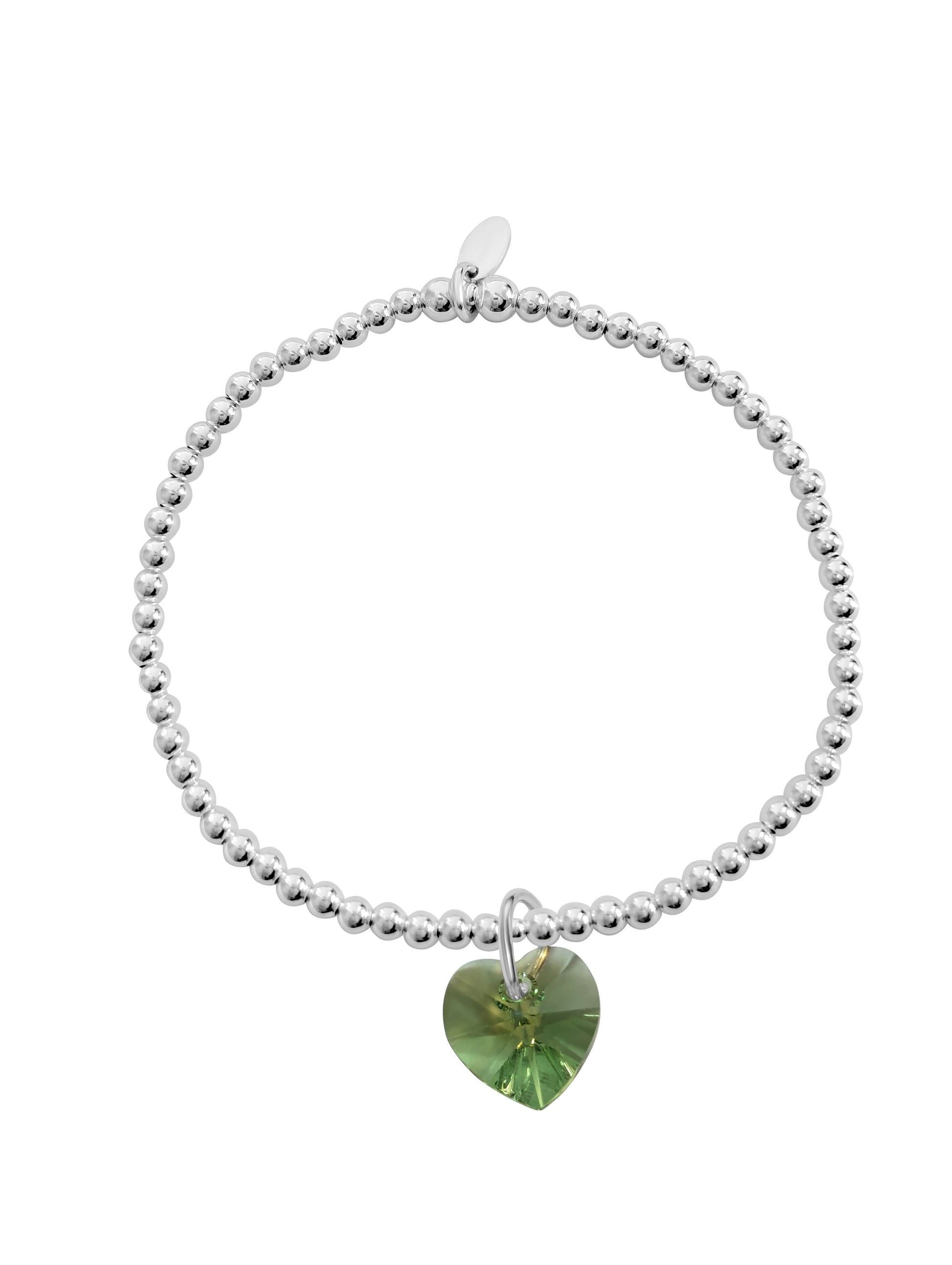 Each stretchy beaded bracelet has a sparkling crystal birthstone heart suspended onto the beads.